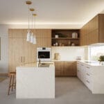 La structure de style classique des armoires se marie en parfaite harmonie avec le bois exposé de...