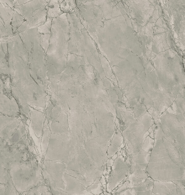 Marbrures surdimensionnées et veinages chargés dans une esthétique organique de grappes de gris poussiéreux entourées de zones plus blanches, dans un neutre audacieux dérivé de la nature et adouci par des sous-teintes nuancées ponctuées de reflets blancs, en finition ultra rugueuse.