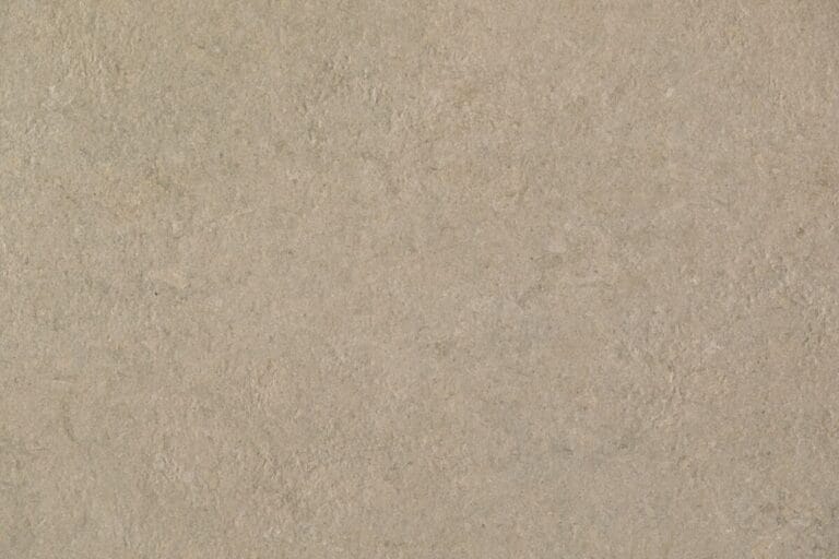 A neutral grey with a richly detailed granular aesthetic made of tiny shells, grains, aggregates, and impurities, fused into an elaborate archaic texture of tone-on-tone fossils. Warm grey and cashew are speckled with small moss rings and darker stone-washed dashes, in Stone finish.