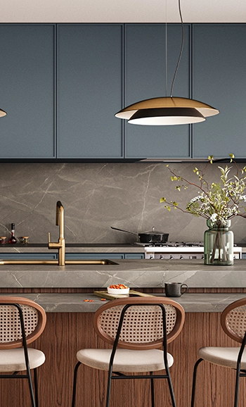 A cool grey surface with soft, subtle veins that blend harmoniously to create a sense of natural movement reminiscent of luxurious stone. Boasting a sophisticated appearance, this surface is suitable for modern and elegant spaces. In a Honed finish.