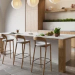 Le design minimaliste ne cesse d’évoluer et, en 2026, il revisite les notions d’échelle et de proportion. Les comptoirs ultra-fins gagnent en popularité en raison de leurs bordures épurées et profilées, qui s’harmonisent parfaitement avec les cuisines contemporaines et les meubles-lavabos modernes. Dans la même veine, les dalles grand format s’imposent comme le choix privilégié des designers qui souhaitent utiliser des surfaces sans joint et créer un effet visuel saisissant.