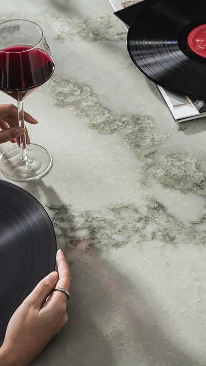 Nous ne pouvons pas divulguer tous les détails de sa composition en raison de sa nature délicate sur le plan commercial, mais nous pouvons confirmer que ce matériau révolutionnaire est conçu selon le même procédé de fabrication éprouvé et utilisé pour les surfaces traditionnelles en quartz, ce qui en garantit l’uniformité, la qualité et le caractère évolutif, et ce, dans toutes les installations de production à l’échelle mondiale.