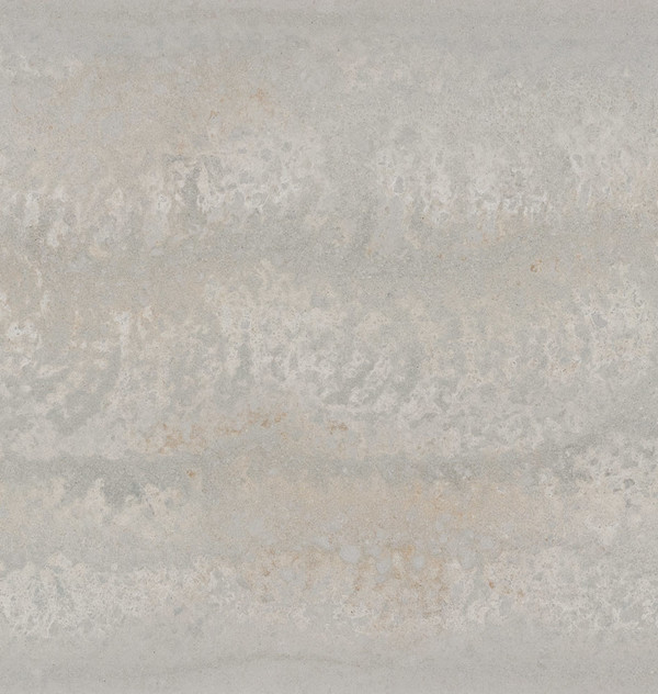 Un socle en béton léger rehaussé de riches taches de blanc cassé, de voiles de gris,des touches de bruns et des traces oxydées de jaunes pâles et de verts délavés,pour un look industriel corsé.