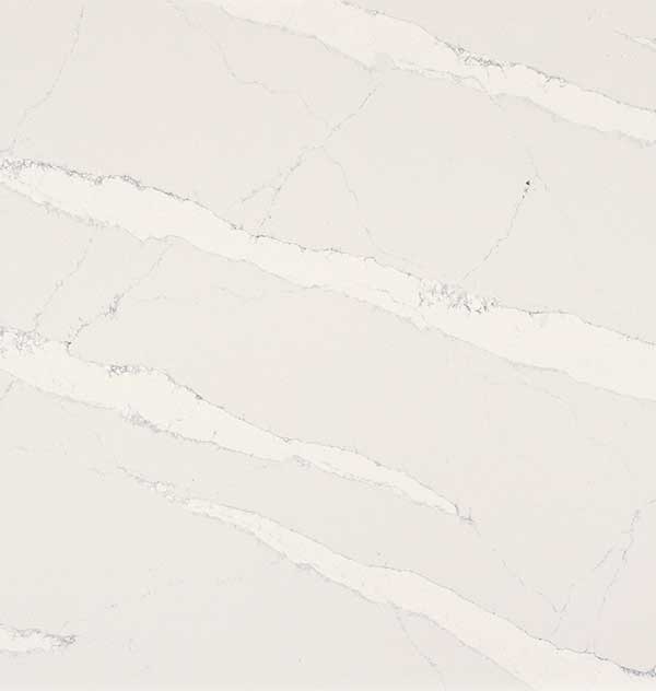 Un paysage magnifique de blancs givrés transpercés de traits gris élégants imitant les mouvements géologiques imposants, dans une surface au fini poli honorant la présence immuable de la nature.