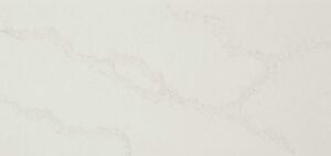 Une fastueuse symphonie de marbrures gris pâle tombant en cascade sur un fond d’un blanc crémeux.