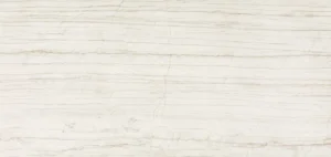 La base d’un blanc osseux présente un motif de fines bandes grises traversées par de minces fissures qui évoquent l’essence préhistorique de la pierre craquelée. Ce design monochrome reflète magnifiquement la lumière et crée une esthétique élégante et contemporaine.