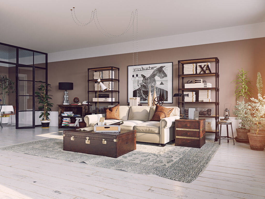 Inspiré des vieilles usines et des locaux industriels, le style utilise les éléments de structure tels que les poutres et les piliers comme pièces maîtresses autour desquelles les autres éléments s’unissent en un espace cohérent.